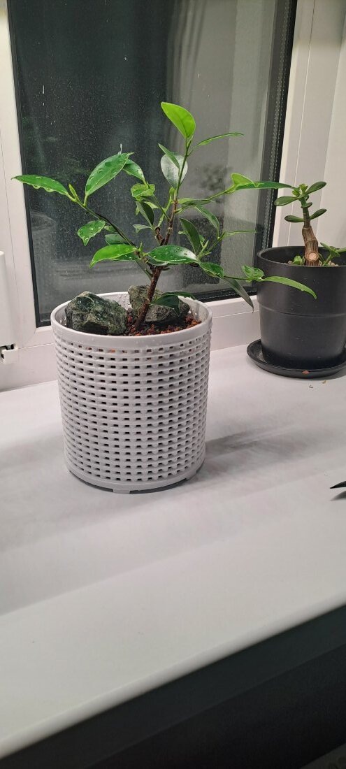 Kamolovlad Опубликовано 5 Февраля Автор Поделиться Опубликовано 5 Февраля В среду 5 февраля 2025 года я произвёл пересадку. Это для меня было открытие. В дуршлаг для изготовления сыра. За место некрасивого дуршлага для промывки овощей и фруктов, использовать дуршлаг для изготовления домашних сыров. У него явно больше преимуществ, потому что везде одинаковая умеренная перфорация со всех сторон, качественный, пищевой, жесткий пластик. Эстетично смотрится как горшок. Для растения растить корни в нем будет одно удовольствие. Грунт использовал смесь диатомита,цеолита, вулканической лавы и кокосового субстрата. А для удобрения гранулы osmocote. Произвёл лёгкий наклон растения, немного наложил проволоки. Пока живём и растём дальше. Всем спасибо за внимание! Ссылка на сообщение Поделиться на других сайтах