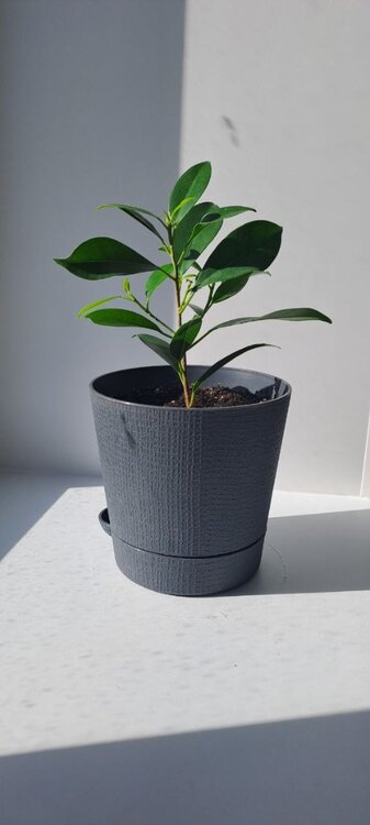 Kamolovlad Опубликовано 5 Февраля Поделиться Опубликовано 5 Февраля В одном из объявлений на авито нашёл фикус сорта тигровая кора. За плечами с данным видом фикуса был единоразовый опыт,но печальный, в связи с отсутствием хорошего опыта в агротехнике, приобретенный фикус погиб из за неправильной пересадки после покупки. Осенью 2024 года я купил, представленный на фото, черенок фикуса, у одной девушки в Энгельсе. По приезду домой, я его посадил в горшок, с обычным простым грунтом для фикусов и пальм. В голове набрасал план по обрезке и формированию для наращивания зеленой массы, а соответственно утолщению ствола. Пока не буду описывать эту технологию, так как её ещё не проверил, но в случае хорошего роста, обязательно тут в подробностях опишу процесс и все нюансы. А пока просто вы можете подписаться на данную тему и наблюдать за историей и развитием совсем пока ещё юного, но потенциально хорошего бонсай. Спасибо дорогой читатель, за то что выделил минуты времени на данный пост. Удачи!) Ссылка на сообщение Поделиться на других сайтах